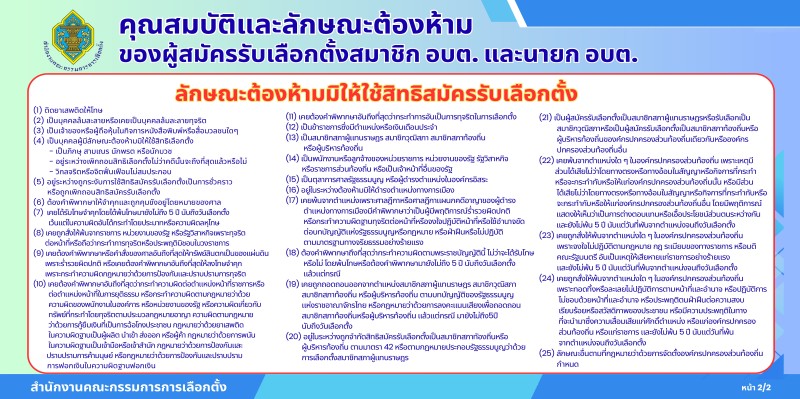 คุณสมบัติและลักษณะต้องห้าม ของผู้สมัครรับเลือกตั้ง ส.อบต.โคกนาโก และนายก อบต.โคกนาโก